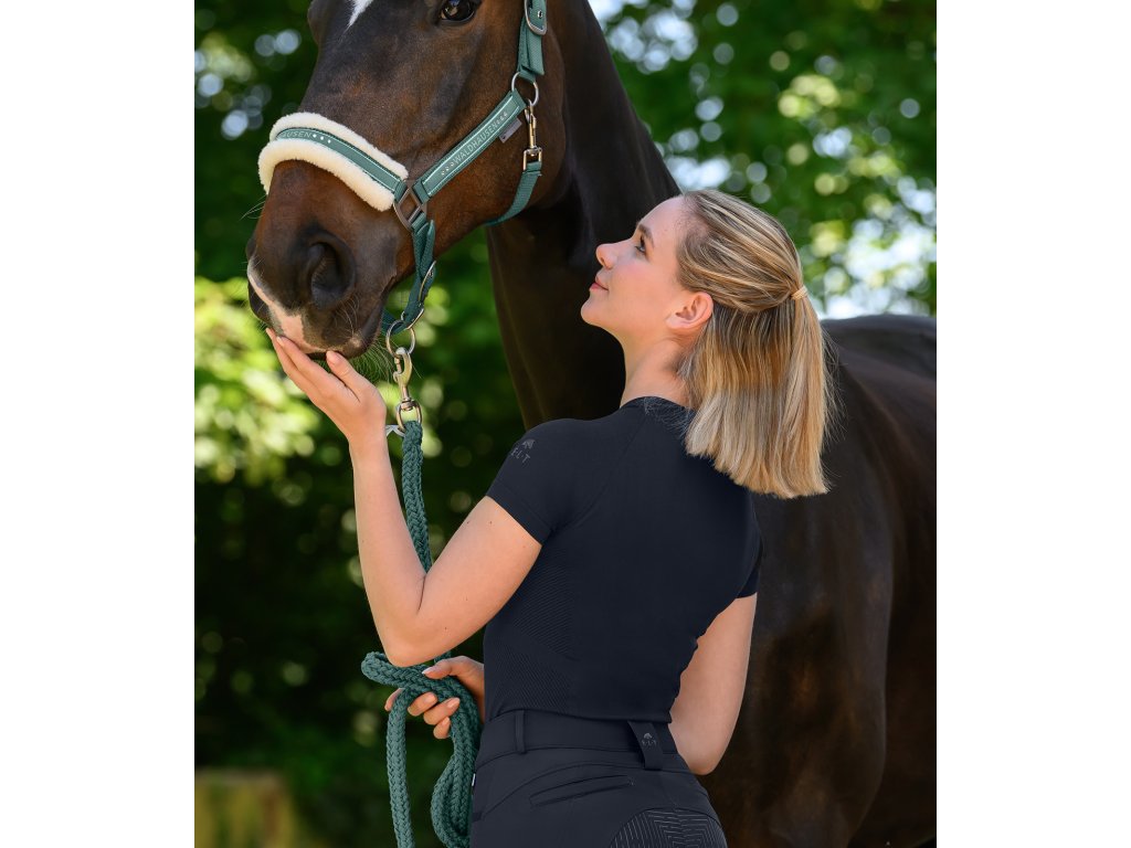 Moderní a funkční dámské tričko s krátkým rukávem. Přiléhavý střih lichotí postavě, zajišťuje pohodlné nošení a neomezuje v pohybu. Tričko je vyrobeno z prodyšného, vysoce elastického materiálu, který se perfektně přizpůsobí postavě. Různé 3D pletené textury v oblast výstřihu, boků a trupu zajišťují moderní vzhled a zároveň podporují efektivní odvětrávání. Bezešvé provedení přispívá k maximálnímu komfortu bez nepříjemného tření. Rukáv zdobí decentní potisk loga E·L·T, který podtrhuje moderní sportovní styl. Ideální volba pro ježdění i aktivní volný čas.
