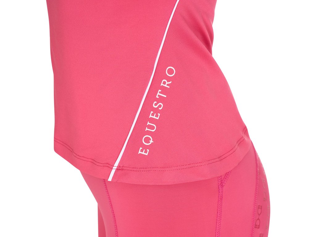 Kvalitní dámské multifunkční tričko s krátkým rukávem. Vyrobené z prodyšné a strečové tkaniny, která usnadňuje odpařování potu a pomáhá regulovat tělesnou teplotu. Tkanina má antibakteriální vlastnosti a velice rychle schne. Chrání před UV zářením. Tričko díky střihu slim fit perfektně padne, je velice pohodlné. Vybavené zapínáním na zip s větruodolným systémem. Zdobené lemováním, bočním nápisem Equestro a logem na límci. K dispozici ve více barvách.