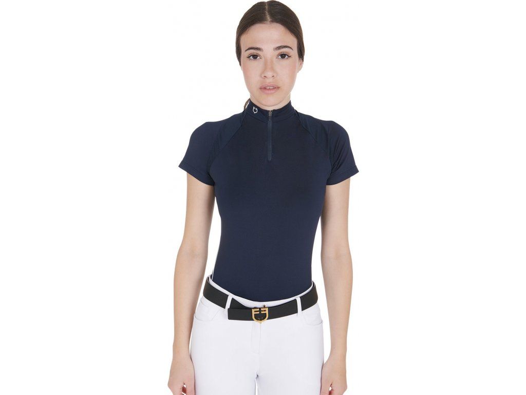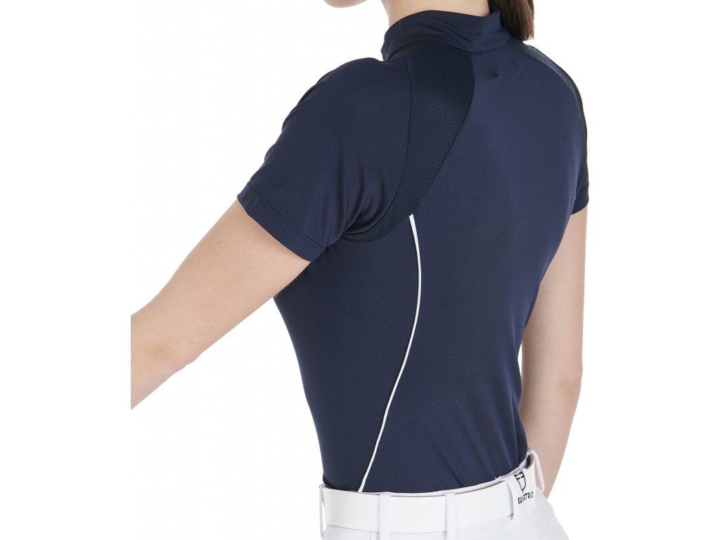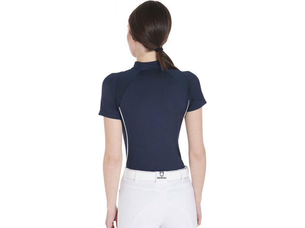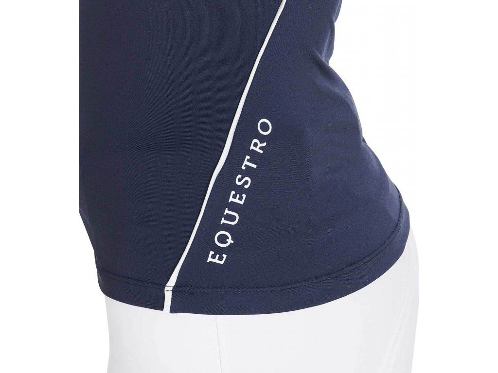 Kvalitní dámské multifunkční tričko s krátkým rukávem. Vyrobené z prodyšné a strečové tkaniny, která usnadňuje odpařování potu a pomáhá regulovat tělesnou teplotu. Tkanina má antibakteriální vlastnosti a velice rychle schne. Chrání před UV zářením. Tričko díky střihu slim fit perfektně padne, je velice pohodlné. Vybavené zapínáním na zip a límcem. Zdobené lemováním, bočním nápisem Equestro a logem na límci. K dispozici ve více barvách. Ve velikostech XS - XL.