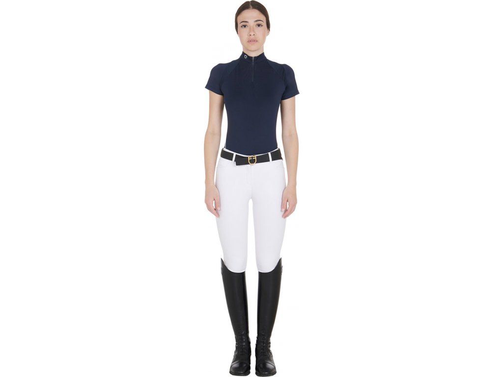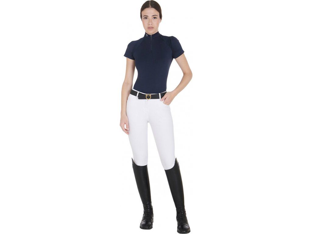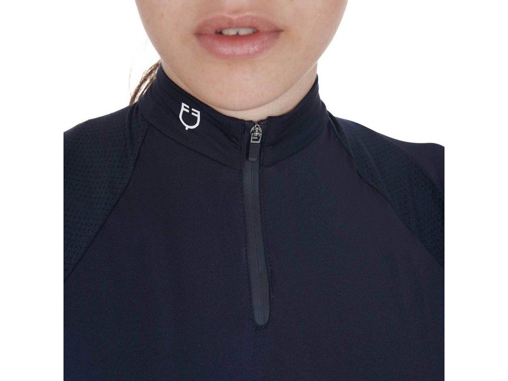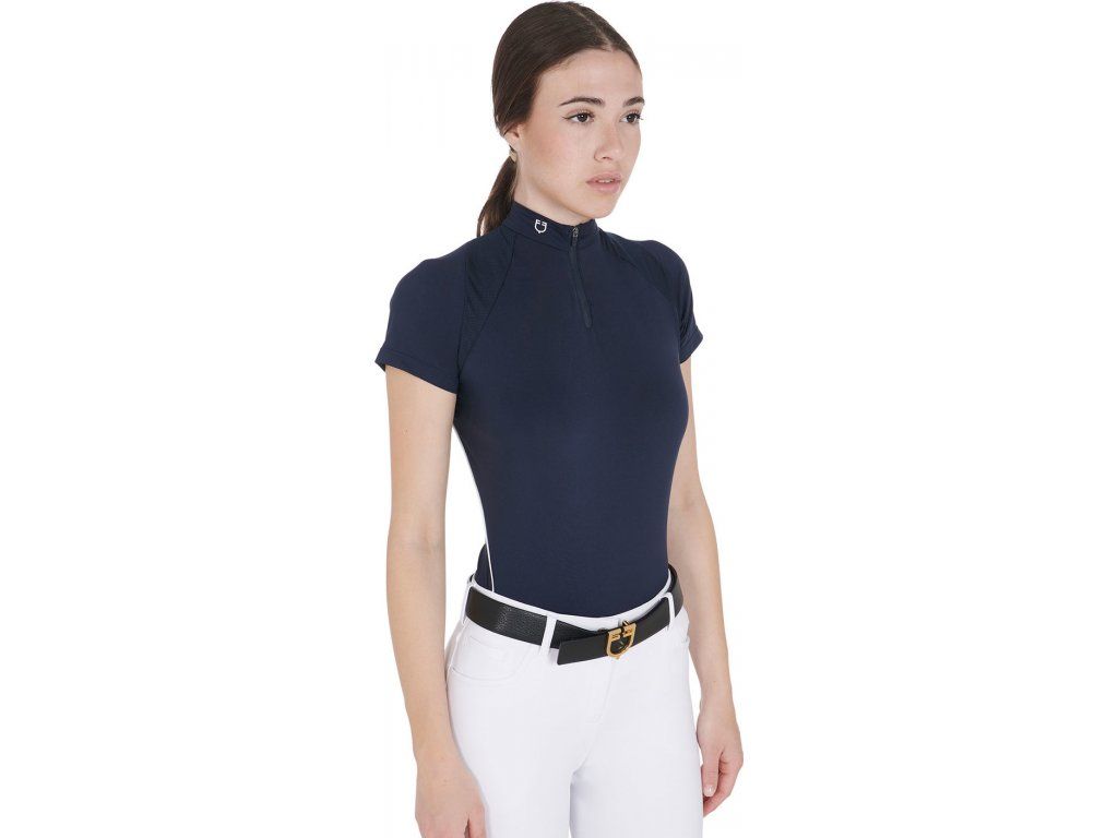 Kvalitní dámské multifunkční tričko s krátkým rukávem. Vyrobené z prodyšné a strečové tkaniny, která usnadňuje odpařování potu a pomáhá regulovat tělesnou teplotu. Tkanina má antibakteriální vlastnosti a velice rychle schne. Chrání před UV zářením. Tričko díky střihu slim fit perfektně padne, je velice pohodlné. Vybavené zapínáním na zip a límcem. Zdobené lemováním, bočním nápisem Equestro a logem na límci. K dispozici ve více barvách. Ve velikostech XS - XL.