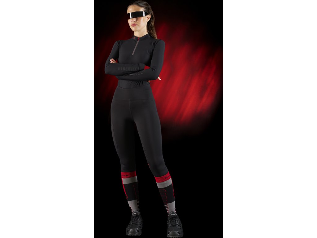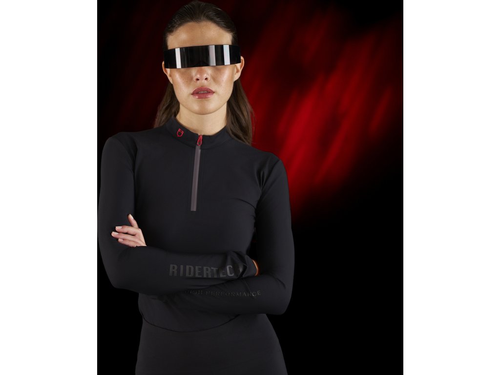 Dámské tréninkové polo tričko slim fit s dlouhým rukávem. Vyrobeno z prodyšné technické tkaniny. Vybaveno tepelně zatavenými švy, které jsou silnou stránkou kolekce Ridertech. Poskytuje vynikající pohodlí a výkon v každé situaci, a to jak při sportovní aktivitě, tak v každodenním životě. Pružnost tkaniny zajišťuje přiléhavé, ale pohodlné nošení, zatímco prodyšnost udržuje optimální tělesnou teplotu a podporuje odpařování potu. Přední zapínání na zip, voděodolné a větruodolné, zaručuje ochranu, zatímco detaily, jako je límec a detaily po stranách, dodávají styl. Zdobeno logem Ridertech v jasně červené barvě na límci i na zádech a nápisem Ridertech v černé barvě podél pravého rukávu.