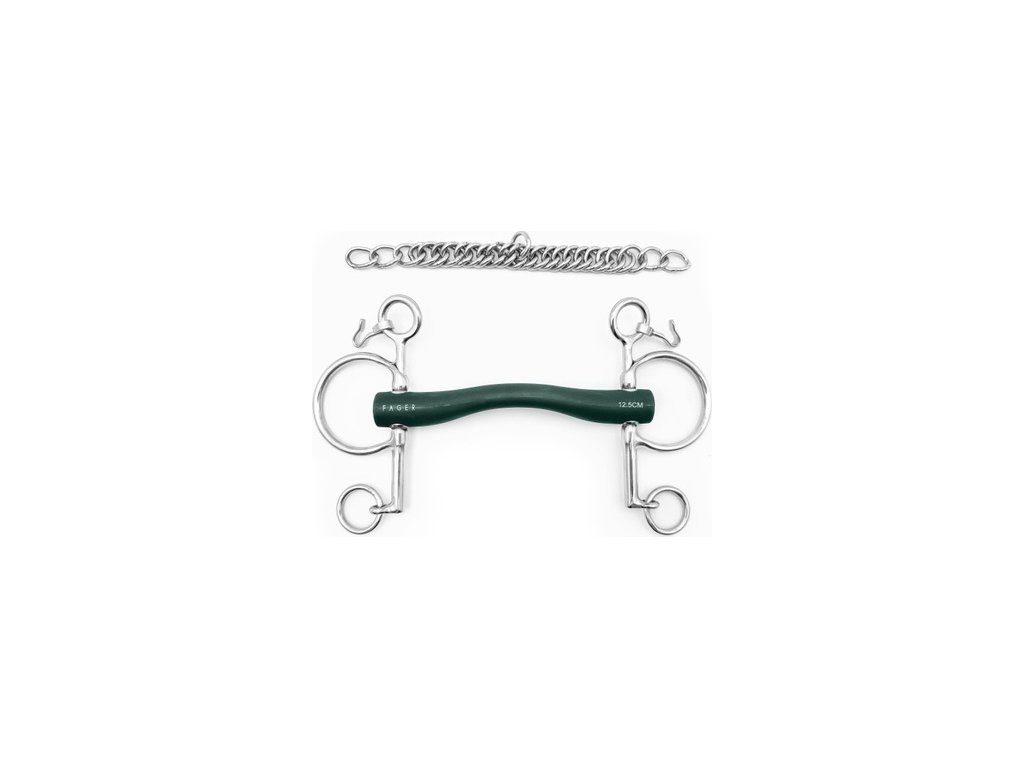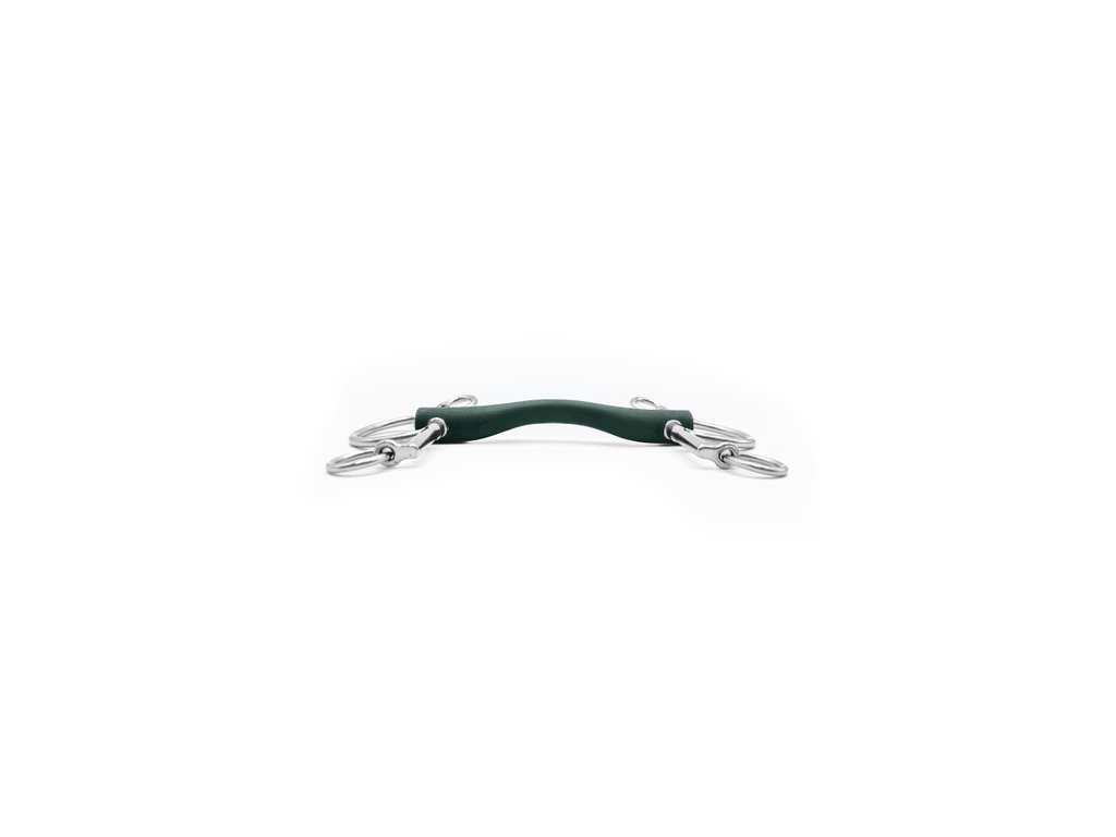 Andrea Hard Rubber je moderní nelomené udidlo typu Baby Pelham, které je navržené pro maximální komfort koně a jemnou, ale jasnou komunikaci s jezdcem. Nabízí odlehčení v oblasti jazyka, díky čemuž je k němu šetrnější. Udítko je vyrobené z prémiového TPU materiálu, který spojuje měkkost gumy s vysokou odolností a dlouhou životností. Je bezpečný pro koně, hygienický a snadno se udržuje. Odlehčení na jazyk v kombinaci s jemným materiálem činí toto udidlo vhodnou volbou pro koně s citlivým jazykem, kteří mají tendence otevírat hubu a opírat se do otěží. Dodávané včetně řetízku.