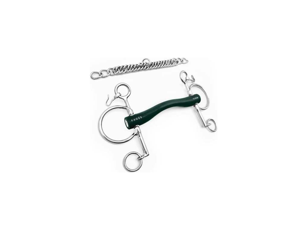 Správné umístění udidla: logo koníka je pravé straně koně a zobrazený koník směřuje dopředu. Taktéž nápis Fager míří směrem vpřed.