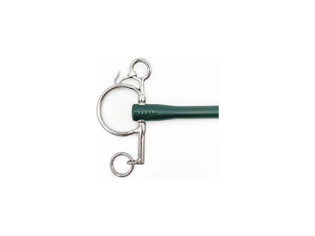 Správné umístění udidla: logo koníka je pravé straně koně a zobrazený koník směřuje dopředu. Taktéž nápis Fager míří směrem vpřed.