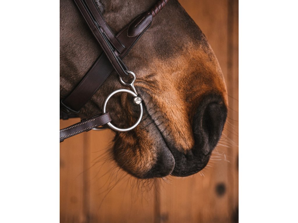 Správné umístění udidla: logo koníka je pravé straně koně a zobrazený koník směřuje dopředu. Taktéž nápis Fager míří směrem vpřed.