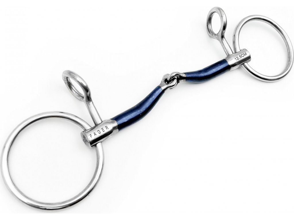 Ručně vyráběné jednou lomené udidlo baucher ze sladké oceli (Sweet Iron) Felix Fager, lehoučké, anatomicky tvarované, velmi pohodlné pro koně. Disponuje unikátním Fagers Smart System (FSS™), který v případě potřeby uzamkne klouby udidla, takže koni nemohou způsobit bolest, ani se dotknout patra. Tento systém dodává udidlu větší stabilitu, udidlo pak připomíná nelomené udidlo, ale je flexibilnější. Pomáhá koni zajistit klid v hubě a podporuje důvěru k udidlu. Velmi oblíben citlivými koňmi.