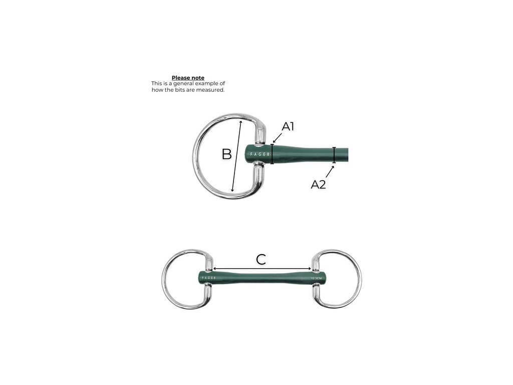 Správné umístění udidla: logo koníka je pravé straně koně a zobrazený koník směřuje dopředu. Taktéž nápis Fager míří směrem vpřed.