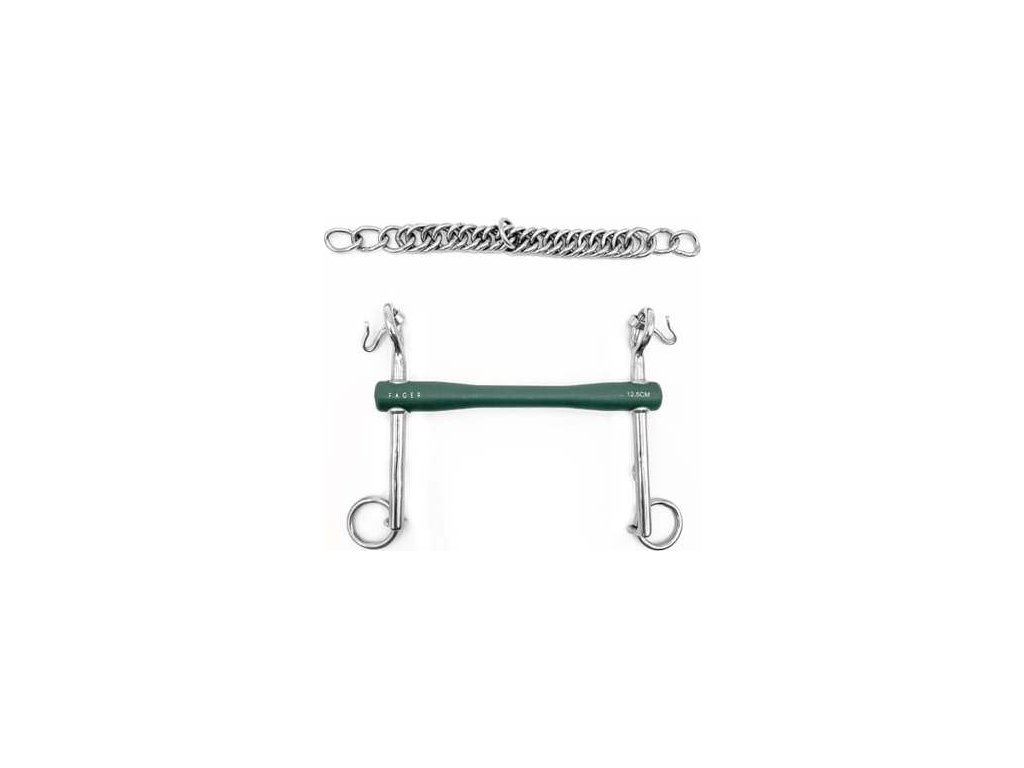 Správné umístění udidla: logo koníka je pravé straně koně a zobrazený koník směřuje dopředu. Taktéž nápis Fager míří směrem vpřed.