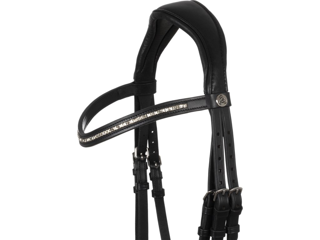 Tato uzdečka je jezdecké umělecké dílo vyrobené z nejkvalitnější italské kůže, které představuje dokonalost řemeslného zpracování Acavallo. Je navržena pro maximální pohodlí koně a nabízí nádech sofistikovaného stylu. Tvarovaný a anatomický nátylník pomáhá zmírnit tlak na lebeční oblast koně. Zajišťuje pohodlné a neomezené nošení. Čelenka je pokrytá diamanty, uzdečce dodává rafinovaný a třpytivý design. Pevné přezky z nerezové oceli zajišťují dlouhotrvající a bezpečné zapínání. Je kombinací stylu, funkčnosti a kvalitního zpracování, které uspokojí i ty nejnáročnější jezdce.
