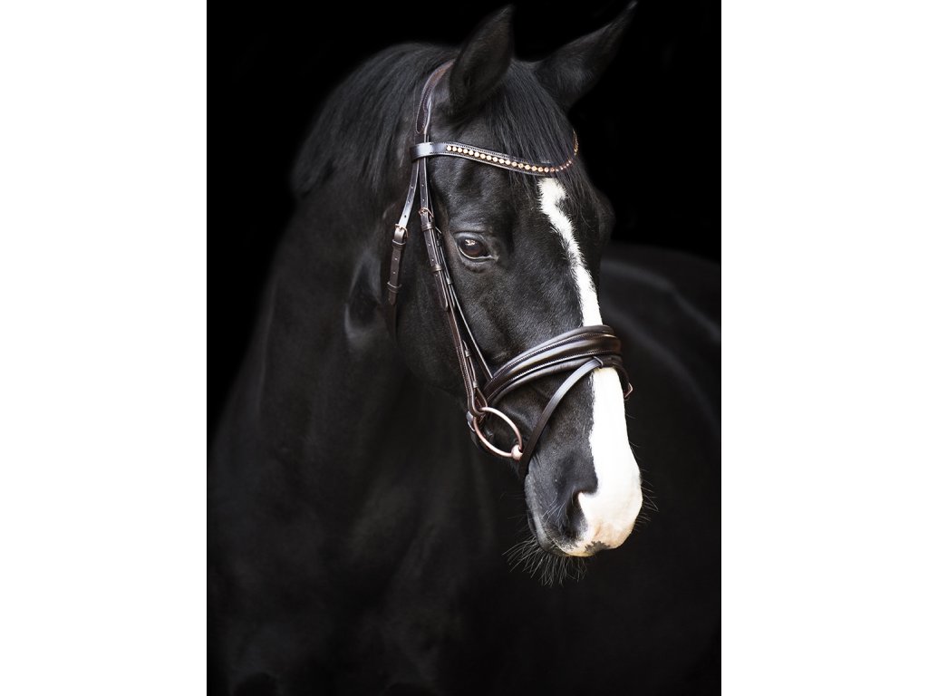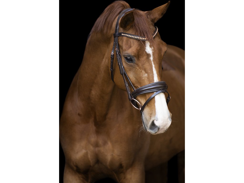 Kvalitně zpracovaná kožená uzdečka nabízí ideální rovnováhu mezi elegancí a komfortem. Je vybavena anatomicky tvarovaným nátylníkem a nánosníkem švédského typu, které jsou měkce polstrované pro maximální komfort koně. Uzdečka je vyrobena z kvalitní kůže, čelenka je zdobena decentními kamínky a polstrování z ovčí kůže zajišťuje mimořádnou měkkost. Dodávána je bez otěží.