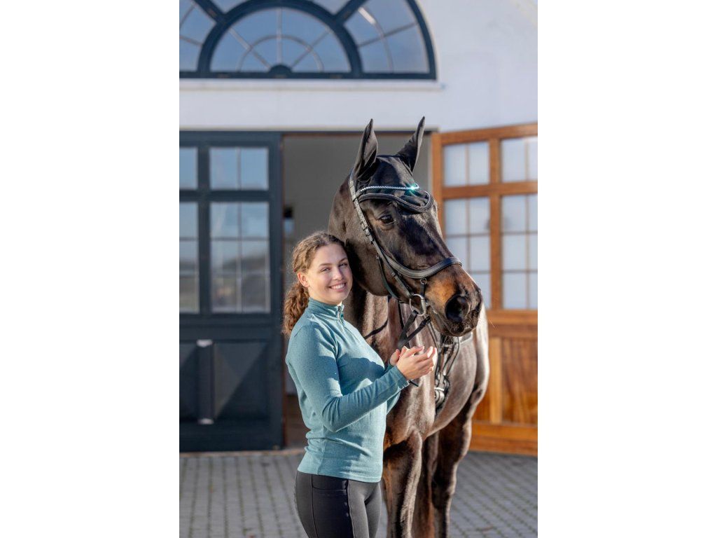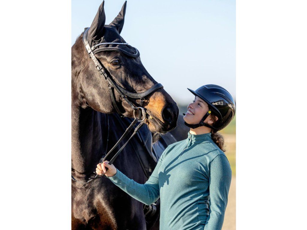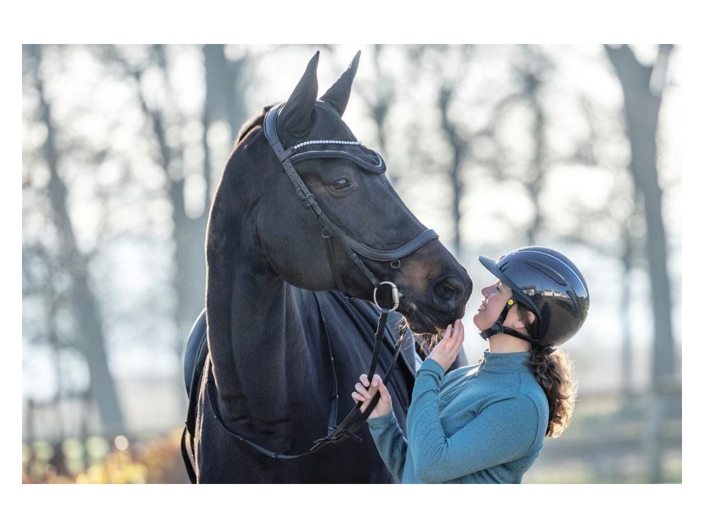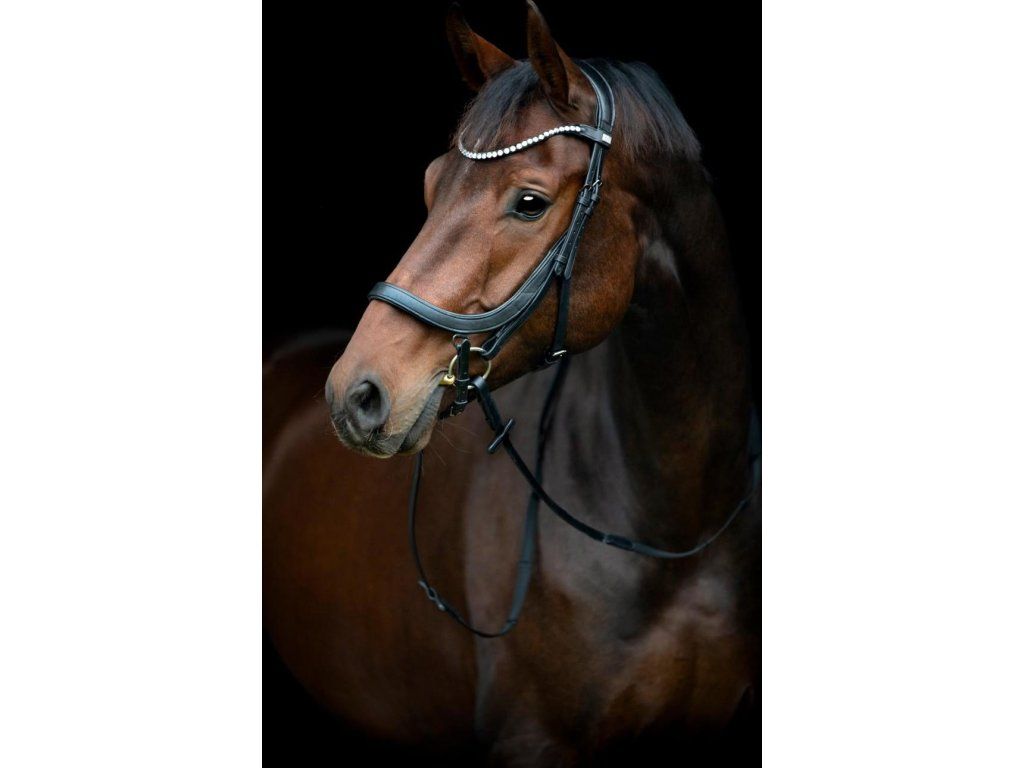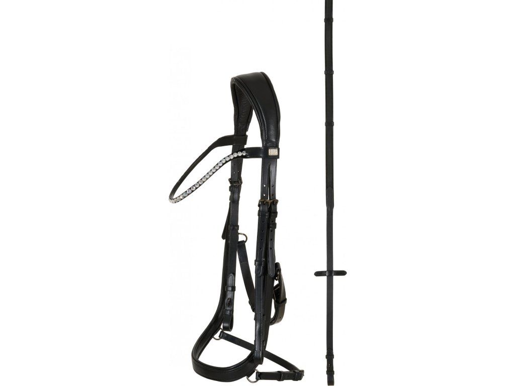 Elegantní uzdečka s anatomickým nánosníkem, který má měkké polstrování pro maximální komfort koně. Speciálně navržený nátylník s extra měkkým polstrováním zajišťuje ještě větší pohodlí při nošení. Čelenku zdobí výrazné stříbrné kamínky, které dodávají uzdečce luxusní vzhled. Součástí balení jsou také 16mm otěže s gripem pro pevné a jisté držení.