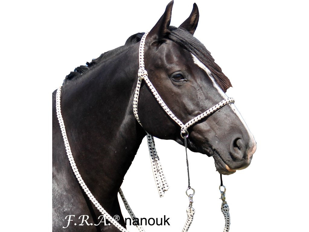 Uzdečka bezudidlová Nanouk F.R.A., provazová, nature/black