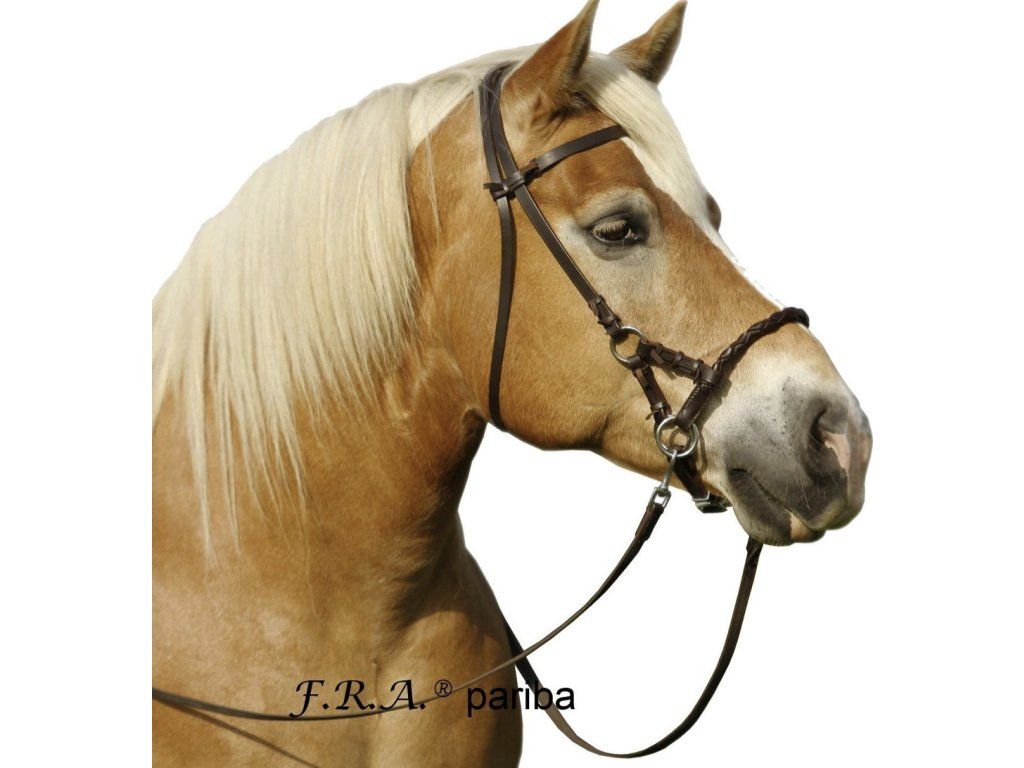 Elegantní kožená bezudidlová uzdečka Sidepull s pleteným kulovitým nánosníkem a plochým nátylníkem. Nánosník působí díky své kulovitosti ostřeji a přesněji, než klasické nánosníky. Vyrobeno z kvalitní kůže. Veškerá kování na uzdečce jsou ve stříbrné barvě. Společně s uzdečkou jsou dodávány také otěže s karabinkami. V rámci bezudidlového diagramu F.R.A. spadá pod číslo 3.