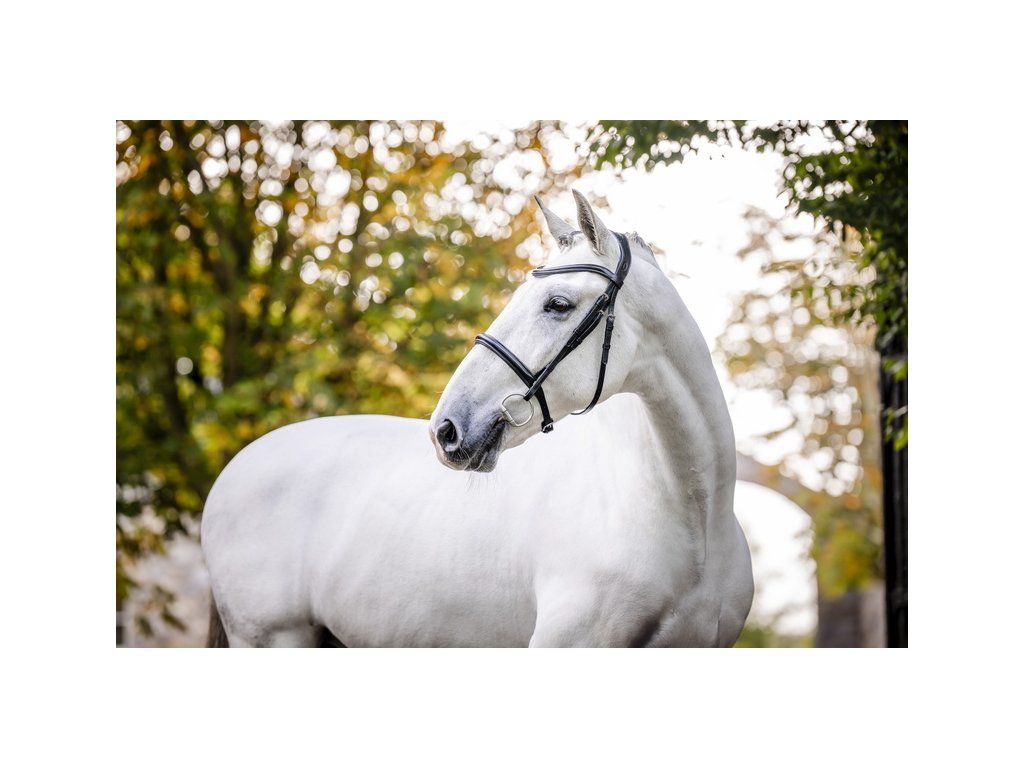 Měkká a kvalitní kožená uzdečka v klasickém střihu. Ergonomicky tvarovaný polstrovaný nátylník poskytuje maximální pohodlí. Uzdečka je doplněna jednoduchým úzkým anglickým nánosníkem a lícnicemi se zapínáním na přezky. Otěže lze dokoupit zvlášť.