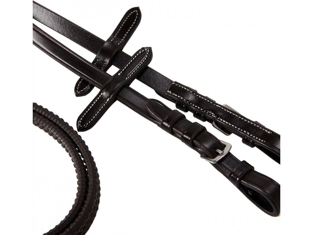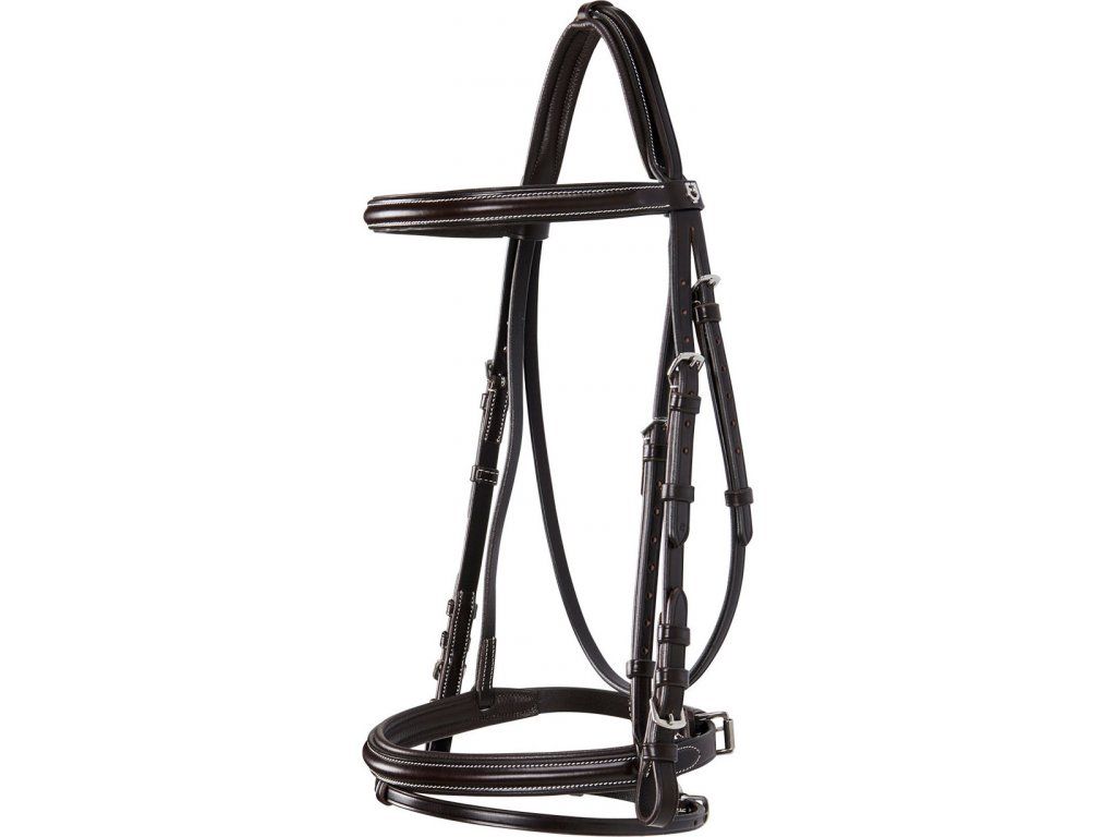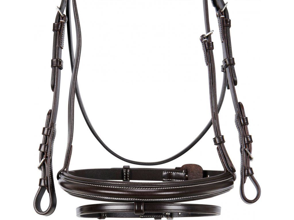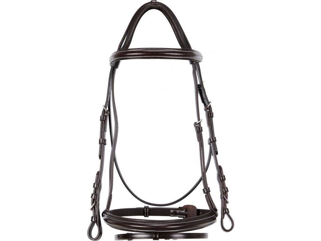 Vysoce kvalitní uzdečka Equestro vyrobena z kůže. Uzdečku je možné využít s jednoduchým anglickým nánosníkem nebo s kombinovaným nánosníkem. Proto je tato uzdečka vhodná pro všestranné využití. Vybavena kombinovaným nánosníkem a čelenkou bez dekorací, působí velice elegantně. Kování z nerezové oceli ji činí velice odolnou. Dodávána s gumovými otěžemi. K dispozici ve více barvách.