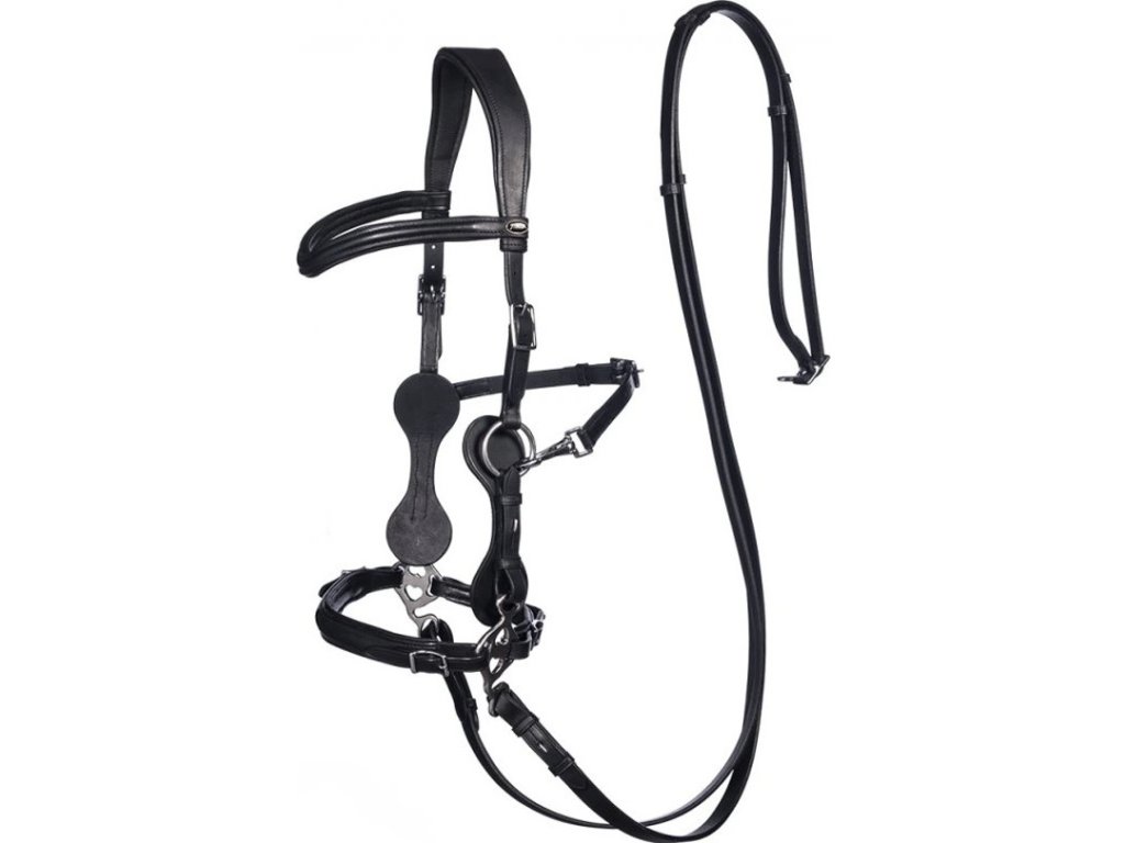 Kvalitní komplet bezudidlové kožené uzdečky a hackamore. Tato uzdečka má anatomický tvar a je speciálně sestavena, tak aby se nepřetáčela a zůstala na správném místě. Má úzký a měkce polstrovaný nánosník a širší anatomicky tvarovaný nátylník. Uzdečku lze nastavit na několika místech dle potřeby. Dále je vybavena ochranou na lícních dílech. Součástí kompletu jsou kožené otěže (široké 15 mm). Otěže mají zarážky a přezku na konci, lze je rozdělit. Komplet obsahuje: uzdečku, hackamore ramena, hackamore nánosník s podbradním řemínkem a kožené otěže. K dispozici i v hnědé barvě. V rámci bezudidlového diagramu F.R.A. spadá pod číslo 2.