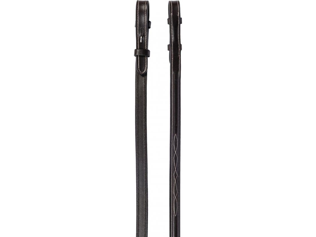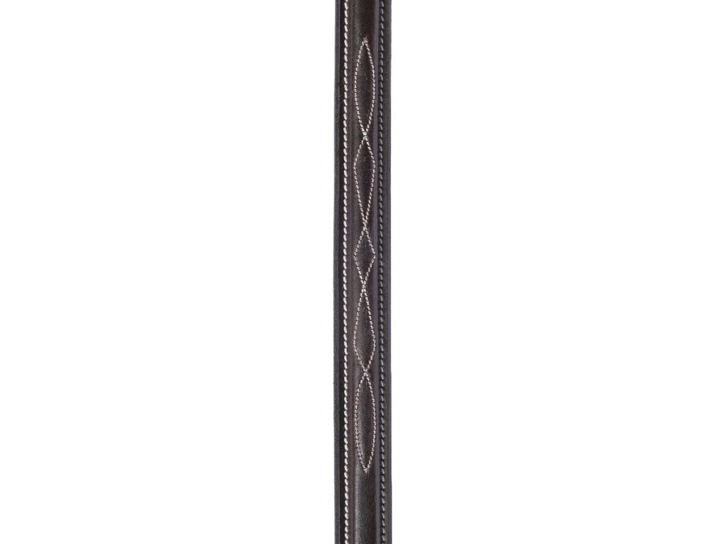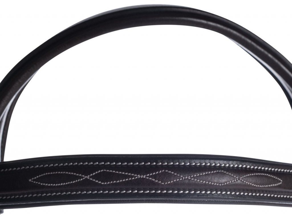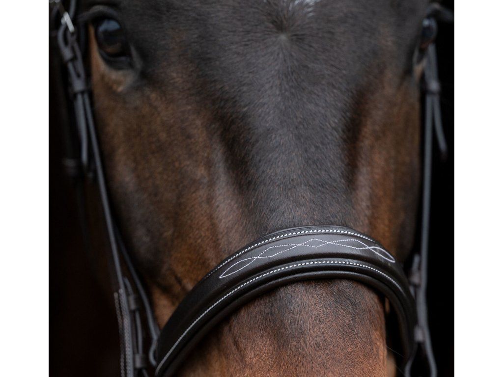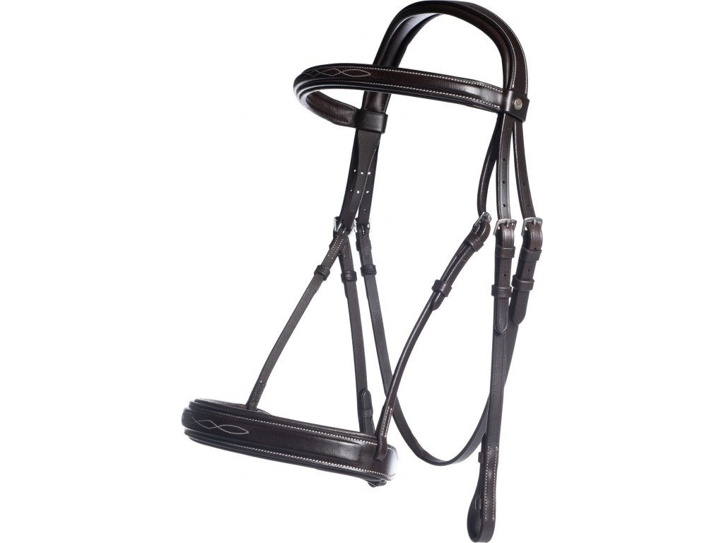 Uzdečka Hunter s anglickým nánosníkem, která je vyrobena z velmi kvalitní olejované kůže. Měkké polstrování nabízí maximální komfort. Zdobená elegantním bílým prošíváním. Dodávaná včetně kožených otěží. Podbradní řemínek není součástí balení.