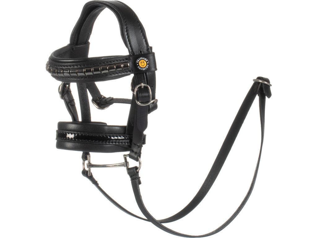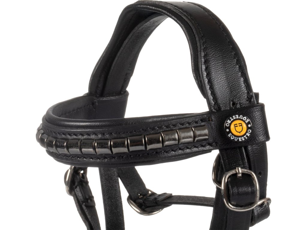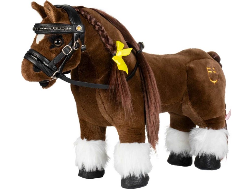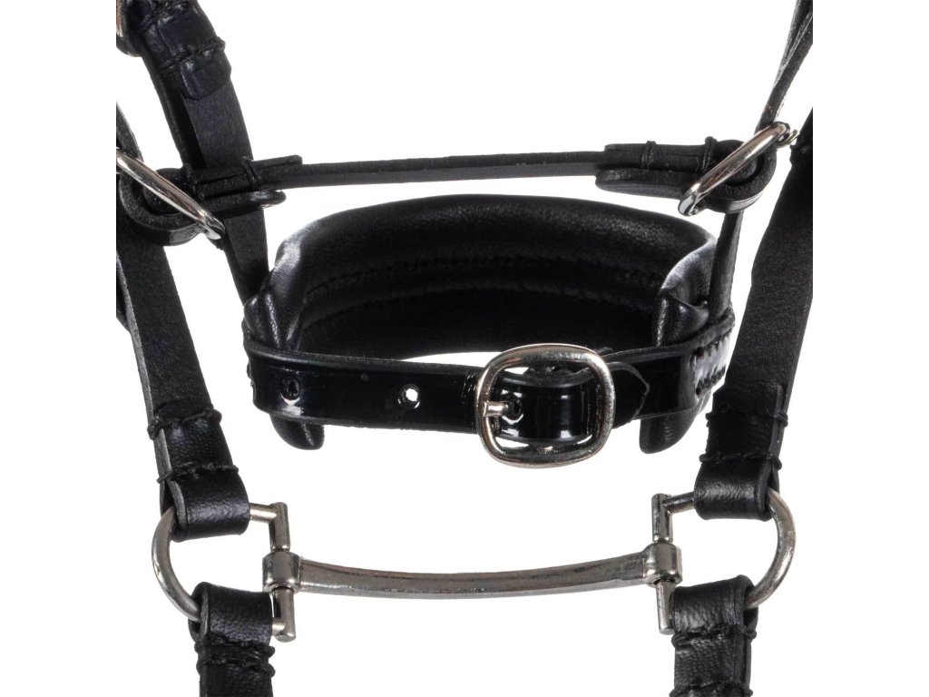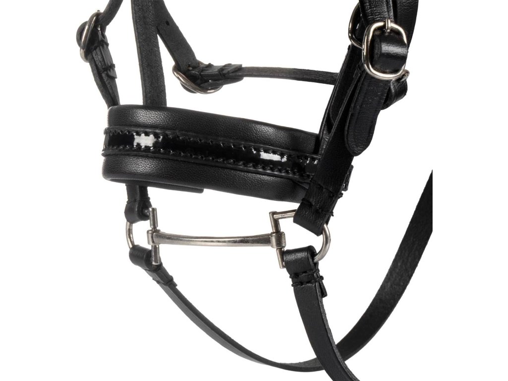 Uzdečka pro plyšové koníky Equestro je realistickou miniaturou skutečné uzdečky, která potěší každého malého milovníka koní. Vyrobena je z vysoce kvalitní, lesklé kůže. Nechybí ani měkké polstrování v oblasti nánosníku a čelenky. Čelenka je zdobena stříbrnými cvočky a lesklý detail na nánosníku dodávají uzdečce elegantní vzhled. UPOZORNĚNÍ: Vhodné pro děti od 3 let. Jedná se o doplněk k plyšovým hračkám!