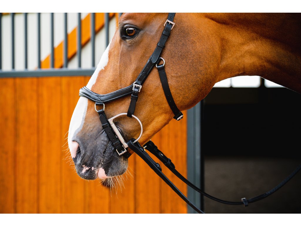 Dále můžete pomocí karabinek spojit udidlo s bočními kroužky u nánosníku, čímž zamezíte pohybu udidla v hubě koně. Tento systém nabízí jedinečnou ochranu jazyka a prostoru mezi řezáky a stoličkami.