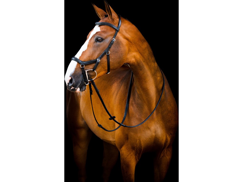 NOVÝ MODEL uzdečky Rambo Micklem Deluxe Competition 2 poskytující ještě vyšší stupeň pohodlí, které váš kůň potřebuje! Speciálně navržená tak, aby se dokonale přizpůsobila tvaru lebky koně a nepůsobila tlak na citlivých místech. Vyrobená ručně z vysoce kvalitní kůže s měkkým polstrováním na čelence, nátylníku, nánosníku a v oblasti lícnic. Uzdečka Competition Deluxe je vybavena širším nánosníkem a nátylníkem, které jsou doplněné elegantním kontrastním prošíváním. Tento model nelze využít jako bezudidlovou uzdečku či jako lonžovací obnosek. Dodávaná včetně karabinek na ochranu jazyka a prostoru mezi řezáky a stoličkami, dále se dvěma sadami dlouhých a krátkých řemínků pro připevnění udidla a otěžemi.