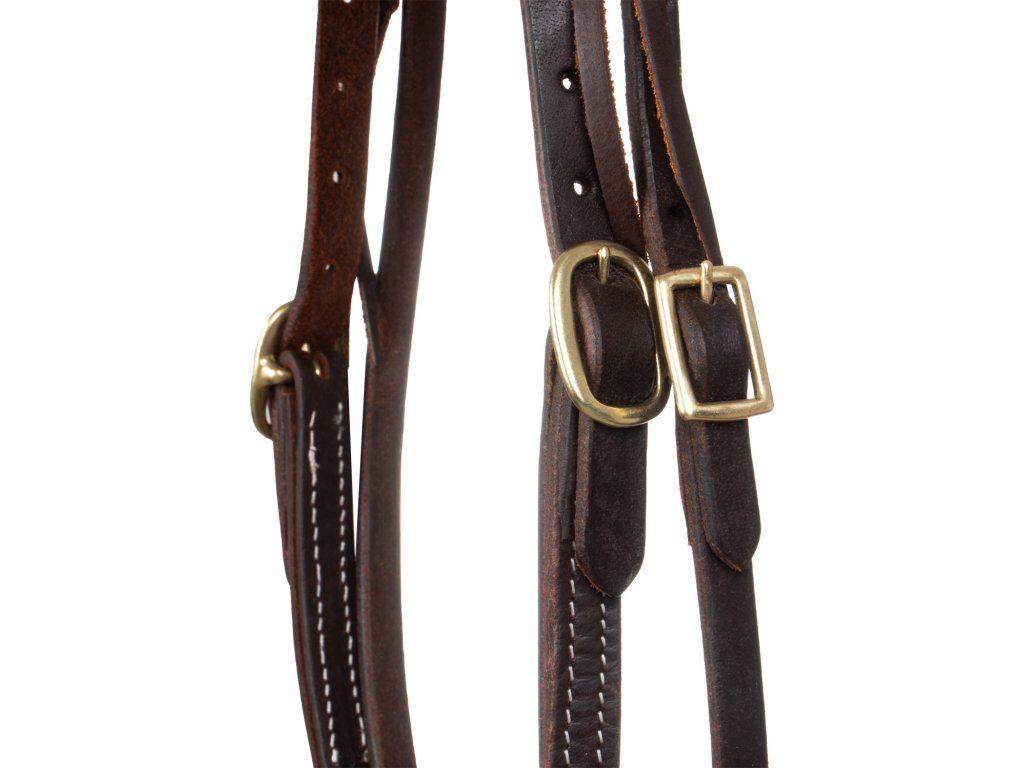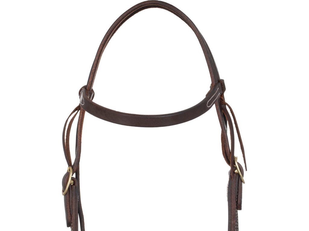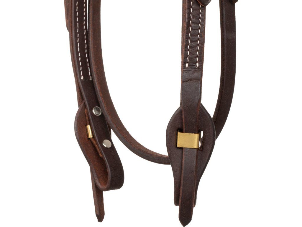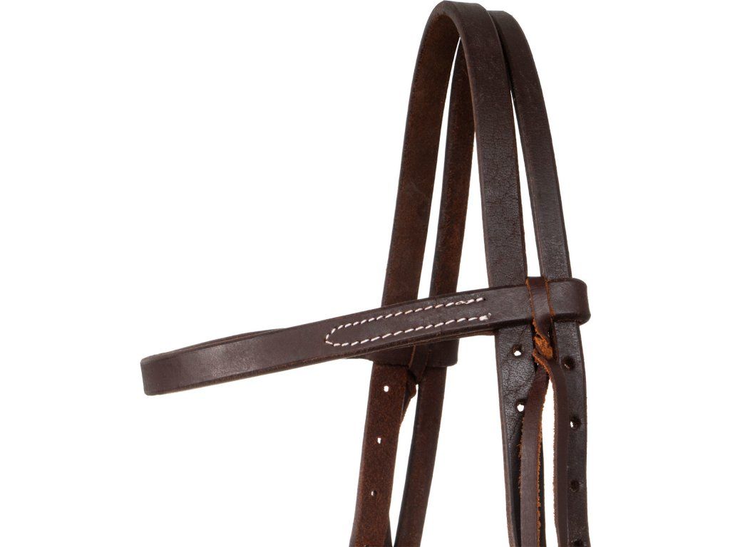 Westernová uzdečka vyrobená z vysoce kvalitní kůže. Vybavená rychle vyměnitelnou čelenkou. Je mimořádně odolná díky přezkám z nerezové oceli.