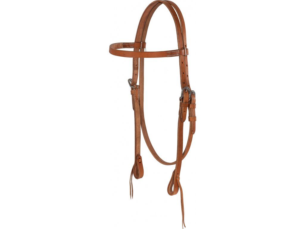 Westernová uzdečka z kvalitní kůže, ručně vyráběna. Vybavena klasickou rovnou čelenkou. Kování ve stříbrné barvě. Dodávána bez otěží. V jedné velikosti.