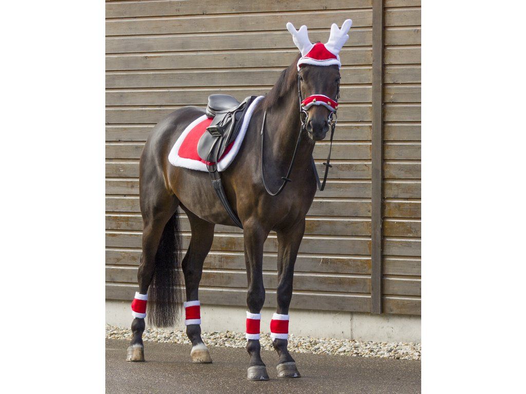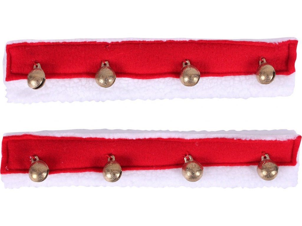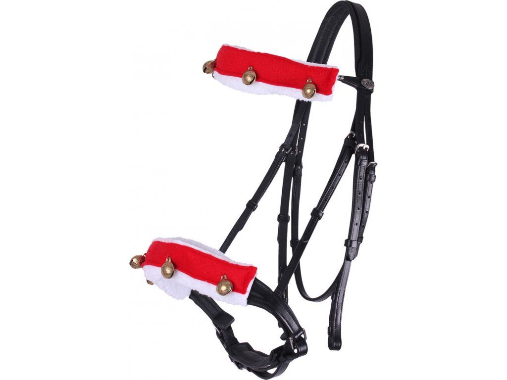 Vánoční ozdoby na uzdečku, z nichž každá má čtyři rolničky. Snadno se připevní na ohlávku nebo uzdečku, se zapínáním na suchý zip.