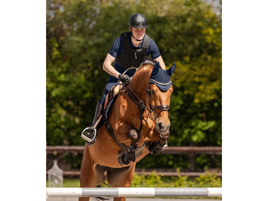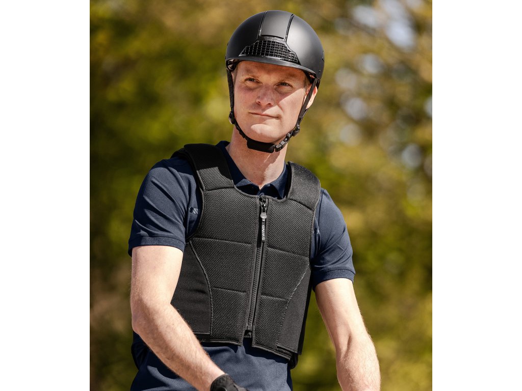 Bezpečnostní vesta P24 Max SWING, která nastavuje nové standardy v jezdeckém sportu. Tento model splňuje nejpřísnější bezpečnostní normy EN 13158:2018 Level 3 a BETA Standard 3. Nabízí komplexní 360° všestrannou ochranu pro maximální bezpečnost. Ochranný panel SWING-Flex, který se skládá ze čtyř vrstev o tloušťce pouhých 20 mm. Vesta je tedy ultra tenká, skvěle odvětraná a zároveň se přizpůsobí pohybům jezdce. Její vylepšený ergonomický střih a možnost úpravy velikosti pomocí suchých zipů po stranách nabízí optimální přizpůsobení. Přední zapínání na zip s bezpečnostním jezdcem SWING umožňuje snadné zapínání či rozepnutí, a to i v nouzových situacích nebo při nošení rukavic. Boční a zadní chrániče jsou navíc odnímatelné pro snadné čištění a údržbu. Bezpečnostní vesta P24 Max SWING je ideální volbou pro jezdce, kteří potřebují maximální ochranu a neomezenou volnost pohybu - ať už v terénu, nebo při každodenním tréninku. Objevte svobodu jízdy s vestou, která spojuje bezpečnost, všestrannost a pohodlí.