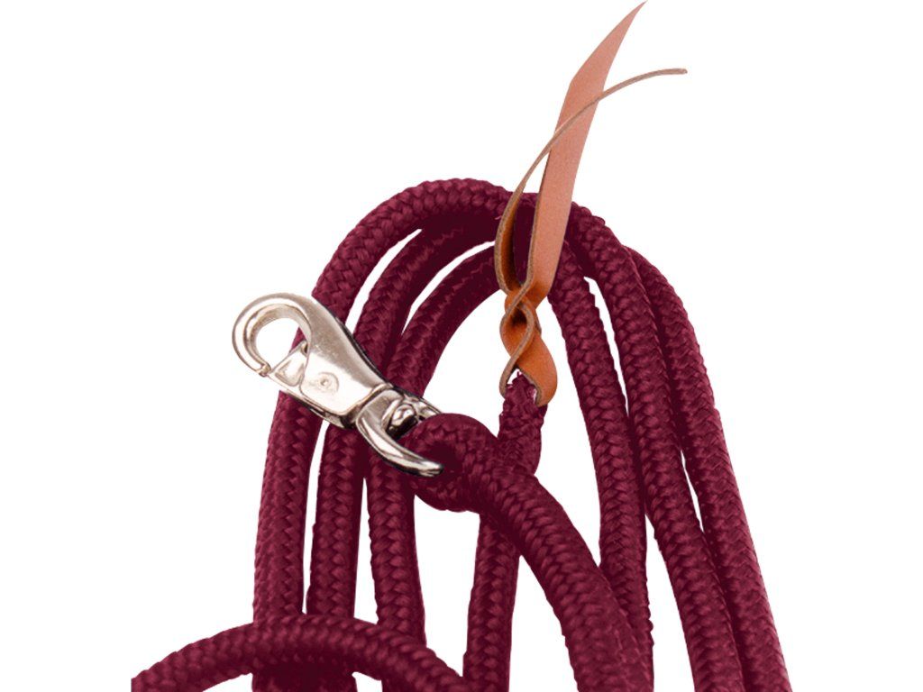Pevné a velmi příjemné vodítko, které je ideální pro práci ze země. Vodítko je vyrobené z odolného materiálu se stříbrnou, otočnou "Bull Snap" karabinou s koženým zakončením. Průměr: 1,8 cm, délka: 3,7 m.