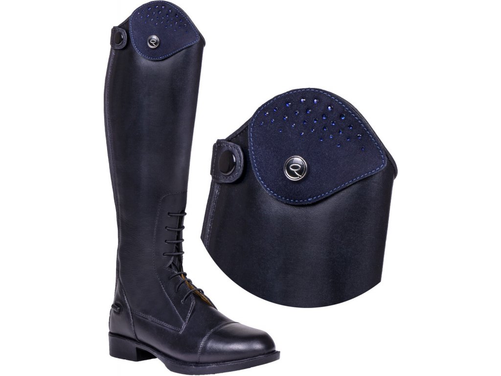 Vyměnitelné díly k vysokým jezdeckým botám Romy od výrobce QHP. Semišový vzhled zdobený třpitivými kamínky, které botu stylově rozzáří. Lze připevnit pomocí suchého zipu. Dodávané v páru.