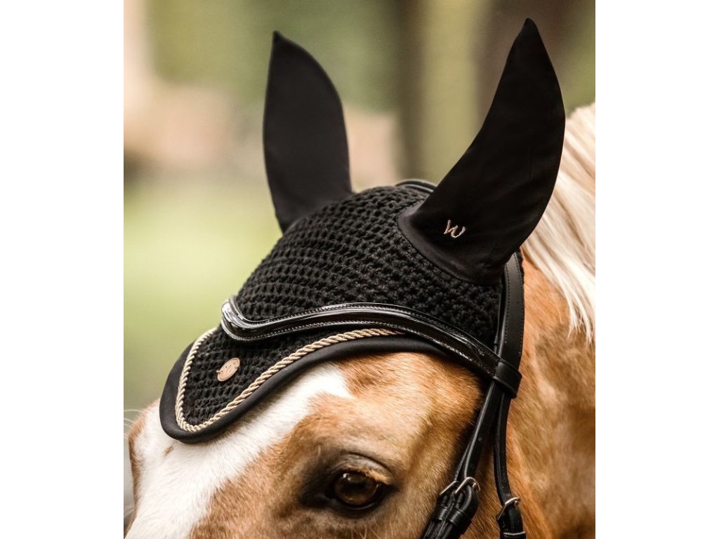 Vysoce kvalitní a elegantní ohlávka s kováním v černé barvě. Ohlávka je nastavitelná a je opatřena měkkým polstrováním z umělé vlny na nánosníku a nátylníku, čímž poskytuje...