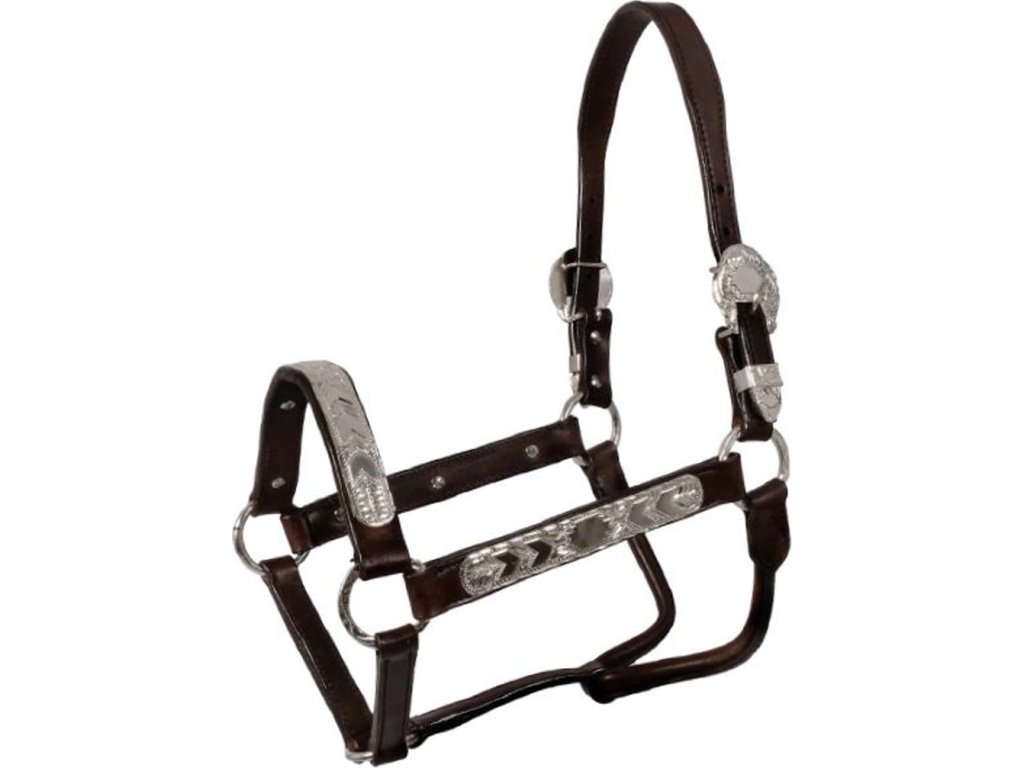 VÝPRODEJ: kovové ozdobné pláty jsou lehce poškrábané. Vysoce kvalitní ohlávka výrobce POOL'S, vyrobena z kůže. Nátylník je nastavitelný z obou stran. Zdobena krásným stříbrným kováním. Dostupná také v barvě cognac. Vyráběna v jedné velikosti, která odpovídá QH.