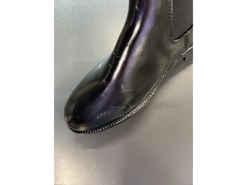 VÝPRODEJ: mírně poškrábané, viz. fotografie. Gumová pérka vhodná pro začínající jezdce. Vybevaná bočními elastickými vložkami a pružným elastickým pásem v zadní části boty, které zajišťují snadné a rychlé obouvání. Vnitřek boty podšitý umělou kůží. V černém provedení.