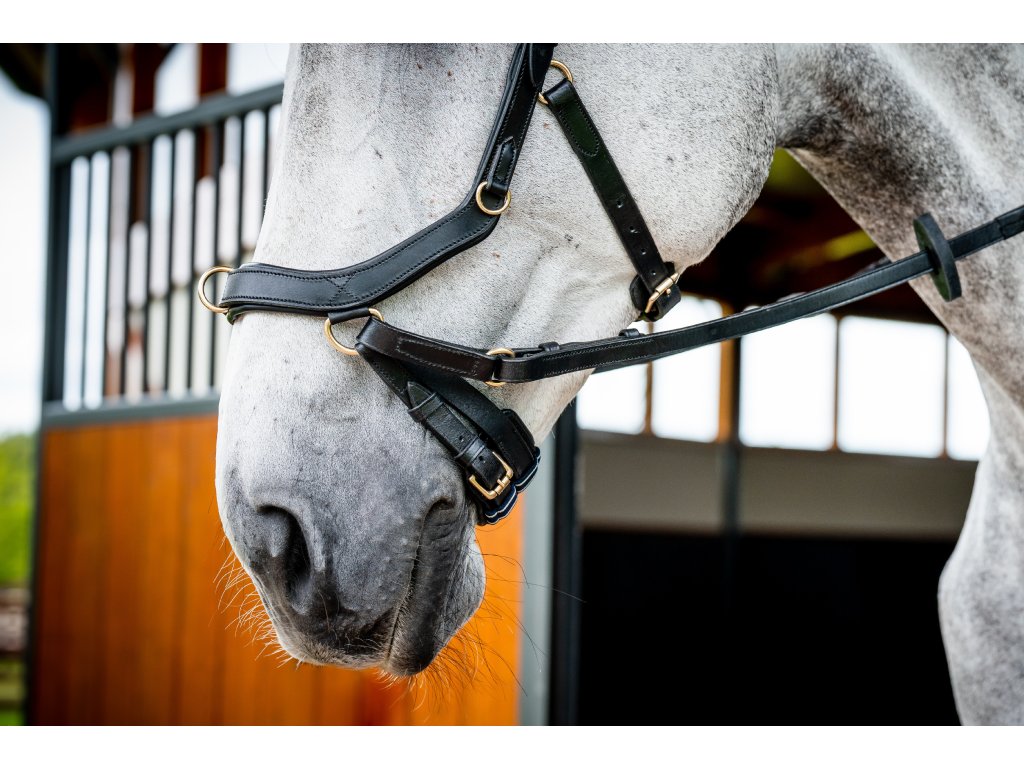 Dále můžete pomocí karabinek spojit udidlo s bočními kroužky u nánosníku, čímž zamezíte pohybu udidla v hubě koně. Tento systém nabízí jedinečnou ochranu jazyka a prostoru mezi řezáky a stoličkami.