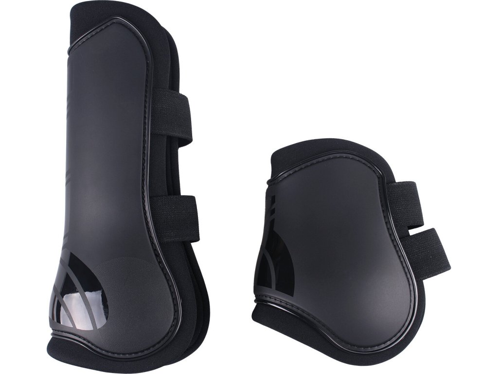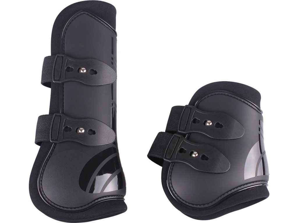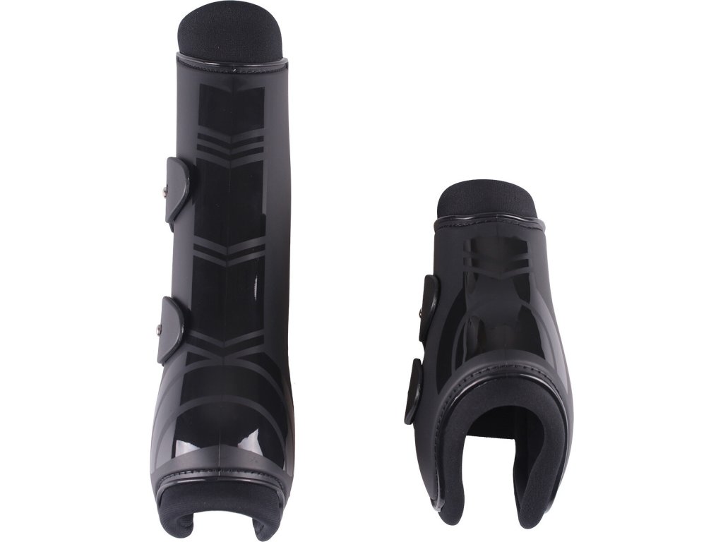 VÝPRODEJ : pouze zadní kamaše! Vyzkušené a lehce odřené na vnitřní straně. Set kamaší a strouhaček, které chrání nohy koně před nárazy a zraněním. Vyrobeny jsou z kvalitní plastové skořepiny a neoprenovou podšívkou. Opatřeny jsou dvěma elastickými popruhy, pomocí kterých se snadno a rychle zapínají. K dispozici ve více barevných variantách.