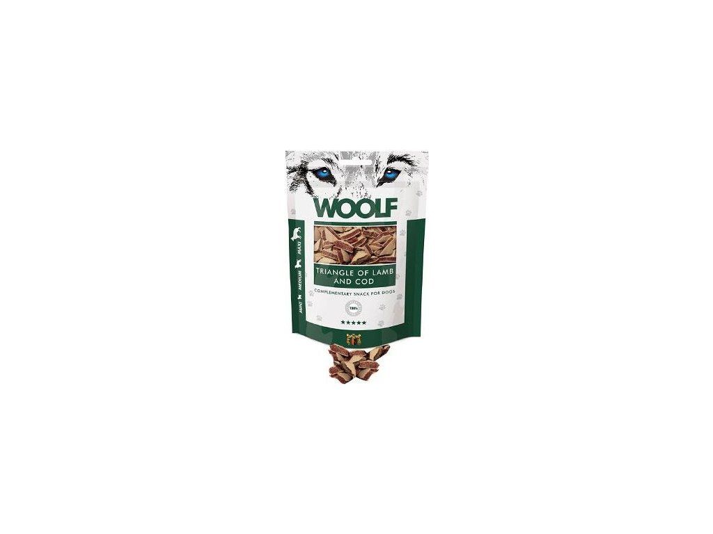 Pamlsky pro psy WOOLF, Lamb and Cod Triangle, 100 g