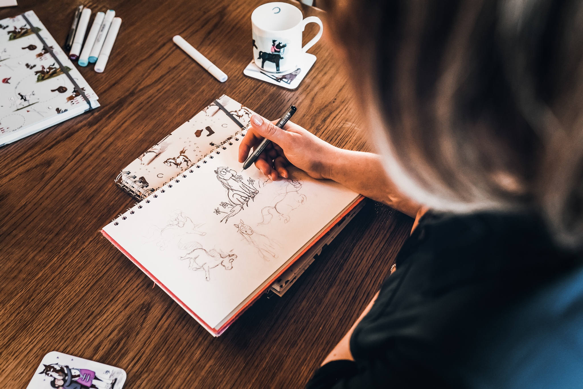 Jsem vždy poněkud v rozpacích, když na otázku, čím se živím, odpovídám: „Maluju obrázky koní.“ Předtím, než jsem začala ilustrovat, jsem se chtěla stát architektkou. Školu jsem absolvovala s vyznamenáním a začala jsem pracovat s výhledem na budoucí kariéru architektky. Už během studií jsem k dokonalosti vypilovala svou schopnost prokrastinace, která se u mě zhmotnila ve formě neohrabaných koníků s velkýma očima. Nejdříve jsem se cítila trapně, když se tyto obrázky najednou zjevovaly během hodin strávených mžouráním do architektonických detailů, zatímco jsem studovala různé druhy odvětrávání. Schovávala jsem je ve svých zápisnících a zakrývala je, když se někdo podíval mým směrem. Byla jsem také členkou Equestrian Society a zatímco jsem se snažila stihnout pracovní termíny, malovala jsem lidi ve stáji a různá zvířata, která se tam pohybovala. Trvalo dlouho, než jsem svou zálibu přiznala svému manželovi, se kterým jsem toho času začínala chodit. Vzpomínám si, jak jsem po něm napůl hodila obrázek přes celou místnost a hned se dívala jinam, abych neviděla zděšený obličej, který jsem očekávala. James se ale stal mým největším podporovatelem.