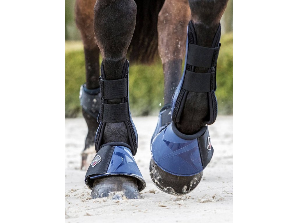 Kvalitní zvony na kopyta s vnitřní neoprenovou podšívkou. Zvony poskytují spolehlivou ochranu před zraněním. Vyrobeny jsou z pevného, ale zároveň pružného materiálu, který je odolný proti nárazům. Zapínání na suchý zip, dodávané v páru. Upozornění: tyto zvony jsou vyráběny spíše ve větších velikostech, zejména na výšku, proto se doporučuje zvolit o jednu velikost menší, než je obvyklé.